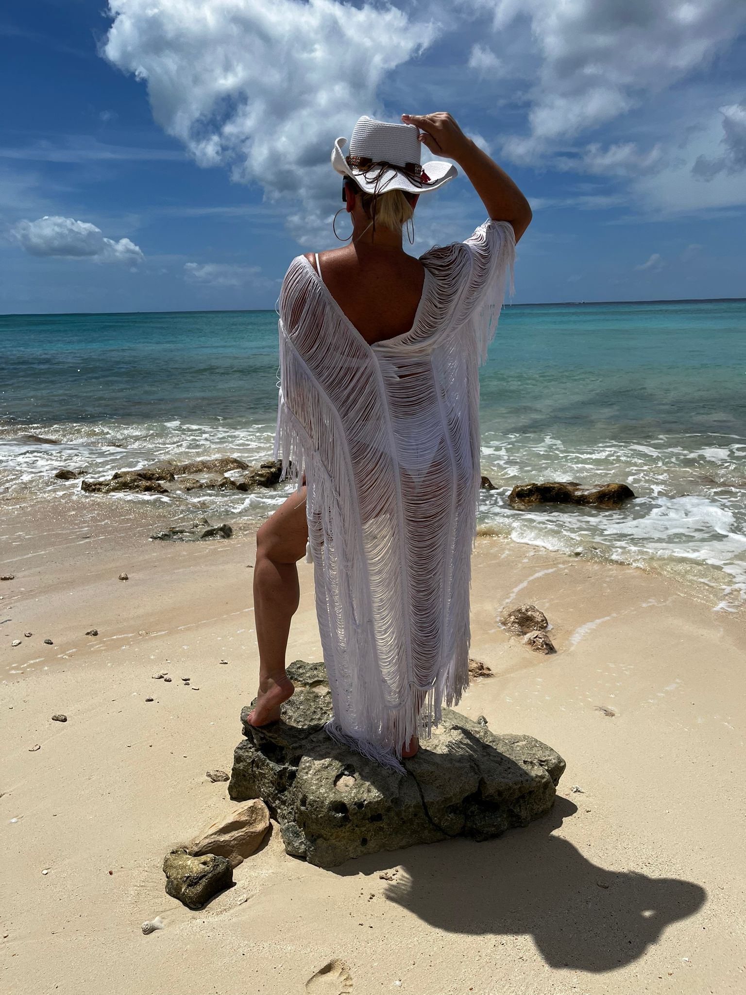 Este Hermoso Cover Up es necesario en tu closet. Perfecto, elegante y fresco para salir del agua, ir a la piscina o playa. Disponible en Blanco y Gold